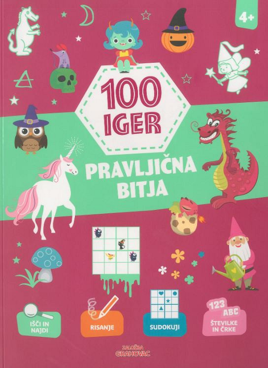 V tej knjigi najdeš kopico kratkočasnih iger: iskanje razlik, štetje, barvanje po barvnem ključu, risanje itd.Sprejmi izziv in se uspešno spoprimi s 100 igrami.Mehka vezava, 21,5 x 29 cm, 96 strani.