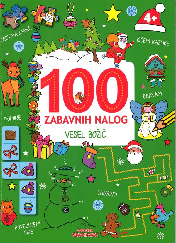 Vaš otrok se bo s 100 zabavnimi nalogami na temo božiča zabaval ure in ure! Labirinti, sestavljanke, razlike, pobarvanke … Vaš otrok bo zelo užival pri reševanju nalog.