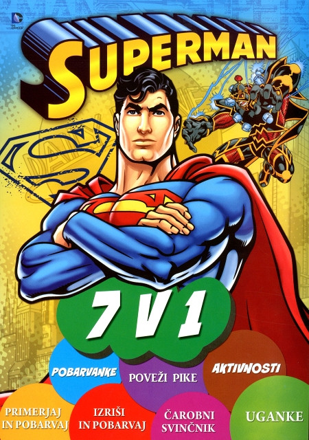 V tej priročni knjigi bodo vaši otroci lahko primerjali in barvali, povezovali pike, izrisovali in reševali uganke v družbi Supermana in njegovih nasprotnikov.Mehka vezava, 24 x 34 cm, 31 strani.