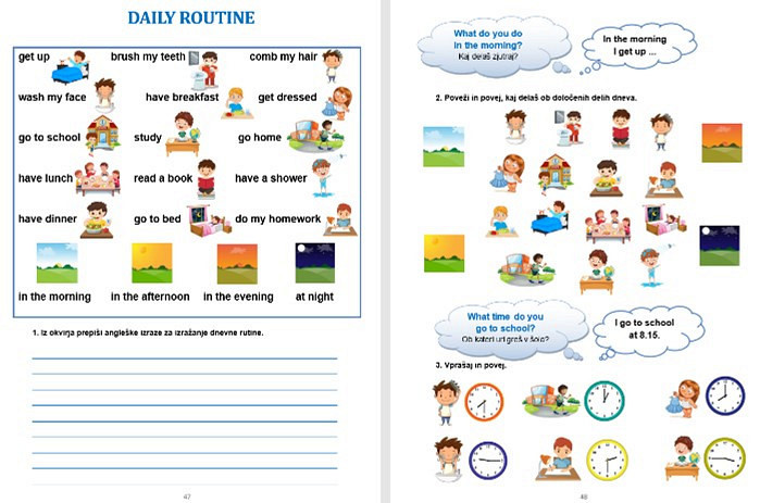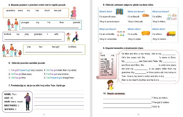 Zvezek Angleščina v 5. razredu je učno gradivo z rešitvami za učenje in utrjevanje angleščine. Naloge so zasnovane na govornih, bralnih in pisalnih spretnostih oziroma zmožnostih. So preproste, jasne in dovolj zanimive za samostojno učenje doma ali v šoli ter predstavljajo vpogled otroku, staršem in učitelju v delo in napredek. Preberite več
