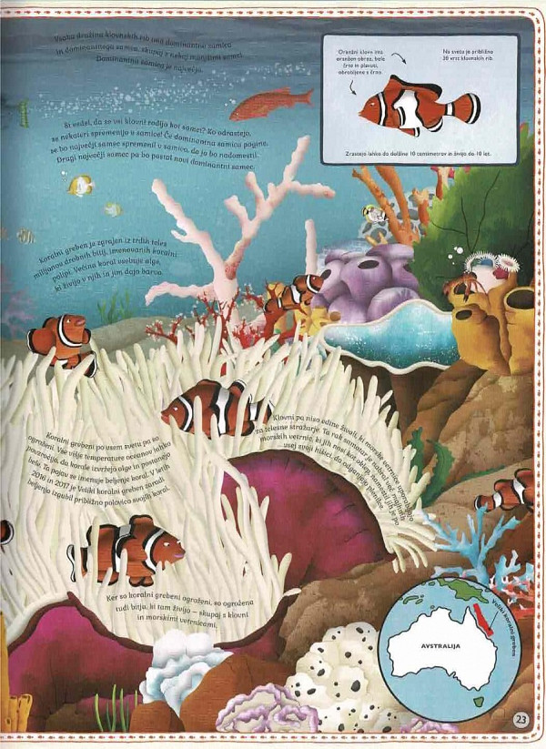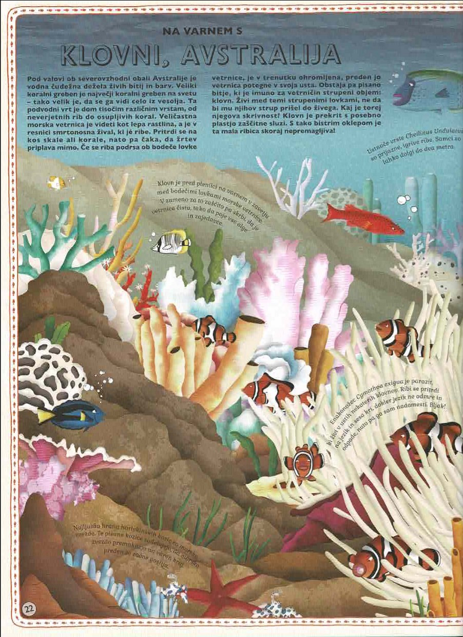 Pripravi se na potop globoko v OCEANE SVETA in odkrij RAZNOVRSTNOST ŽIVLJENJA, ki ga najdemo v GLOBOKEM MODREM MORJU. Ne glede na to, ali se odpraviš na dolgo pot z USNJAČO čez Tihi ocean, dremaš z MORSKO VIDRO ali se v ledenem morju kopaš z MROŽEM, ta knjiga združuje vse VELIČASTNE MORSKE PUSTOLOVŠČINE – na odprtem morju in na oceanskem dnu.
