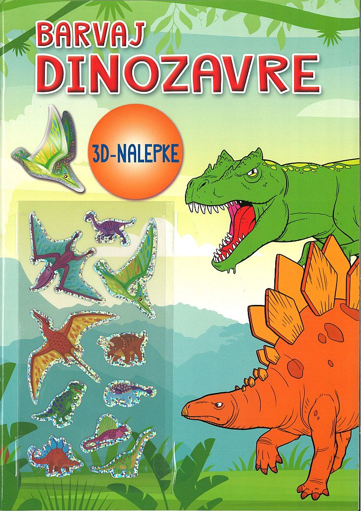 Pobarvajte čudovite risbe dinozavrov ter jih okrasite z osupljivo živimi nalepkami!Mehka vezava, 29,7 x 21 cm, 32 strani + 2 strani nalepk + 3D nalepke.