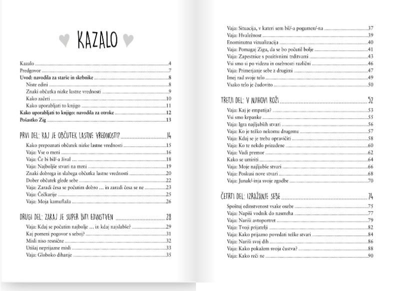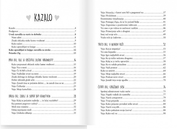 Ta knjižna uspešnica je preprost in zabaven delovni zvezek za otroke, ki ga lahko izpolnjujejo sami ali skupaj s starši ali skrbniki. Združuje dokazano učinkovite metode kognitivno-vedenjske terapije, ki jih uporabljajo otroški psihologi v šolah, in preproste vaje, s katerimi se bo vaš otrok naučil obvladati tesnobo. Vaš otrok bo s pomočjo Ziga – prijaznega in spodbudnega lika, s katerim se lahko poistoveti – delal zabavne in simpatične vaje, med katerimi se skrivajo številni koristni nasveti, navdihujoče trditve in praktične informacije za starše.
