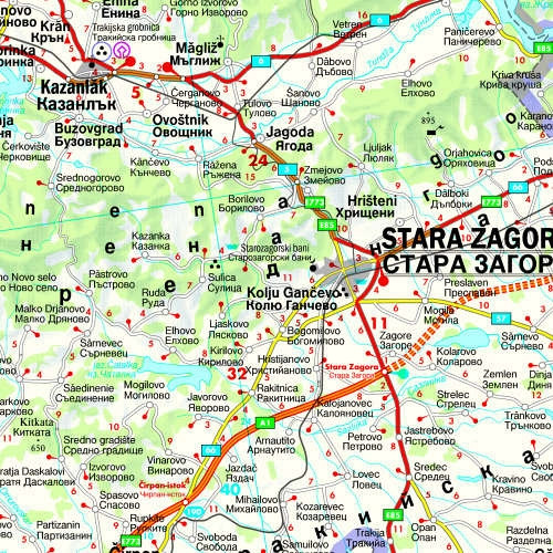 Na avtokarti Bolgarije v merilu 1:400.000 je na voljo še veliko dodatnih informacij: turistične znamenitosti, nacionalni parki, kampi, kolesarske steze in načrti ključnih mestnih središč (Sofija). Poleg tega mestni register s poštnimi številkami omogoča hitro usmeritev. Preberite več