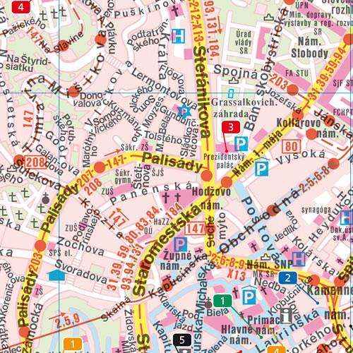 Žepna mestna karta Bratislave v merilu 1:10 000. Karta vsebuje 5 naboljših: Preberite več