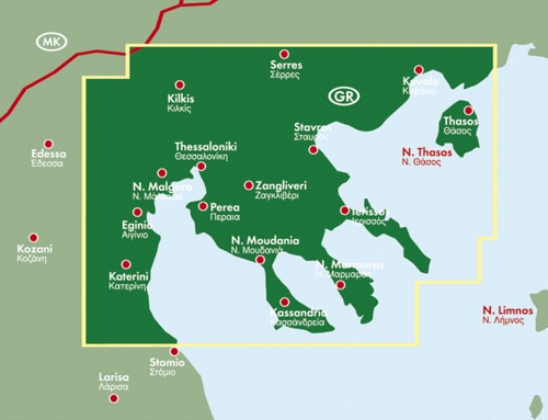 Na avtokarti Chalkidiki-Thassos-Olympos v merilu 1:150.000 je na voljo še veliko dodatnih informacij: turistične znamenitosti, nacionalni parki, kampi in načrti ključnih mestnih središč (Solun ali Thessaloniki). Poleg tega mestni register s poštnimi številkami omogoča hitro usmeritev. Preberite več