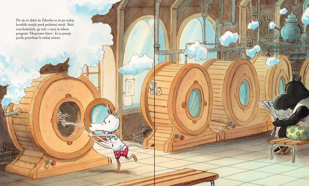 Zdravko je mala zebra, ki se znajde v izjemno hudi zagati: popackal si je progasti kožušček. Odpravi se v pralnico, da bi ga opral, a kaj ko se je tja namenil tudi mali tiger. Preberite več