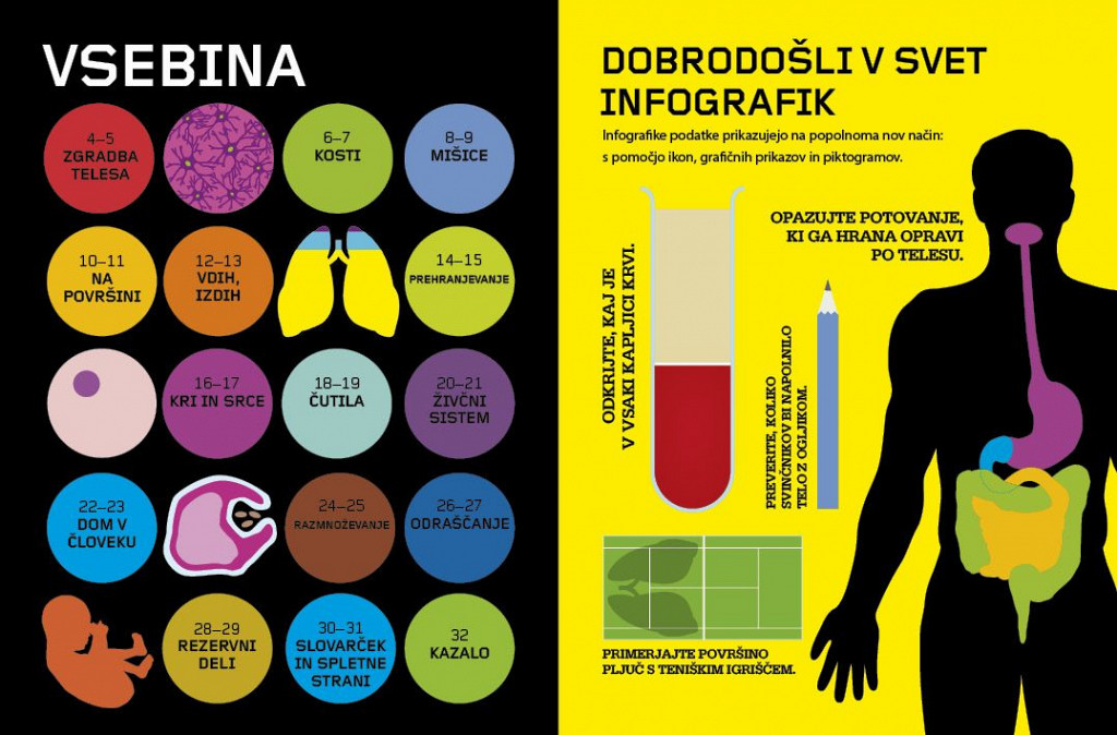 Spoznaj nova odkritja o človeškem telesu! Dobrodošli v svet infografik! Ta vznemirljiva oblika prikaza podatkov uporablja ikone, piktograme in grafike, da informacije predstavi na povsem nov način. Preberite več