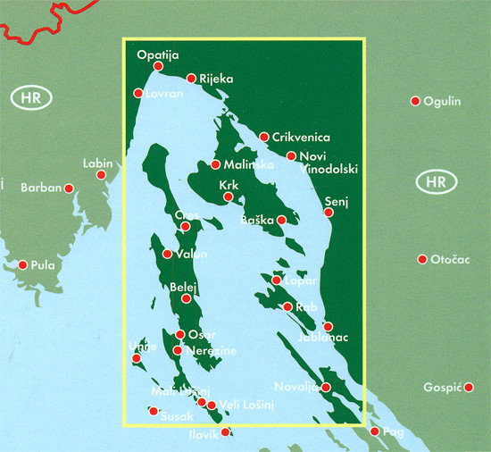Na avtokarti Cres-Lošinj-Krk-Rab v merilu 1:100.000 je na voljo še veliko dodatnih informacij: turistične znamenitosti, nacionalni parki, kampi, kolesarske steze in načrti ključnih mestnih središč (Rijeka). Poleg tega mestni register s poštnimi številkami omogoča hitro usmeritev. Preberite več