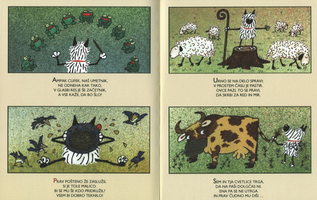 Oddamo čistokrvnega dolgodlakega psička, ki sliši na ime Cufek. Vzredil ga je ilustrator Marjan Manček in ga za nekaj časa posodil meni, da sem ga vzgojil za prodajo. Cufek je prikupen pes, ki ne grize, ne laja na poštarja, ne kaka v stanovanju, ima smisel za igro, zanj pa lahko skrbijo celo otroci sami, kar se z drugimi živalmi sploh ne obnse. Vzemite ga, ne bo vam žal!Trda vezava, 21 x 26,5 cm, 18 strani.
