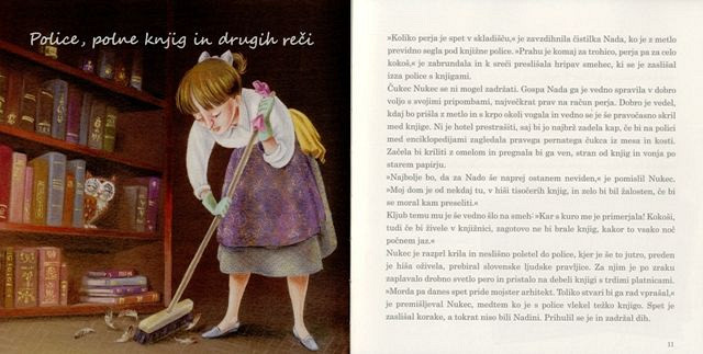 Tako ji pravim, ker me obkrožajo neskončne police s kilometri knjig. Uradno se hiši reče Narodna in univerzitetna knjižnica, saj hrani spomin slovenskega naroda. Načrte zanjo je narisal mojster arhitekt Jože Plečnik. Če bi rad pretočil znanje v svojo glavo in če si radovedne sorte kakor jaz, ni boljšega kraja, kakor je knjižnica. Zato te, dragi mladi radovednež, vabim, da hišo tisočerih knjig raziščeš skupaj z mano in mojstrom arhitektom.
