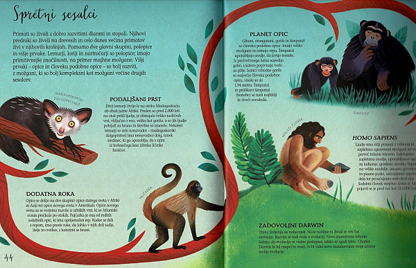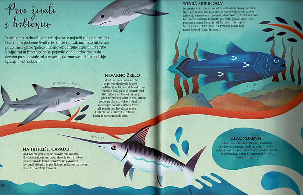 Izvedeli boste, zakaj rakovice hodijo postrani, katera riba je bila prva, ki se je sprehodila po kopnem, zakaj so ptice podobne dinozavrom in zakaj imamo možgane v glavi, in ne v stopalih.