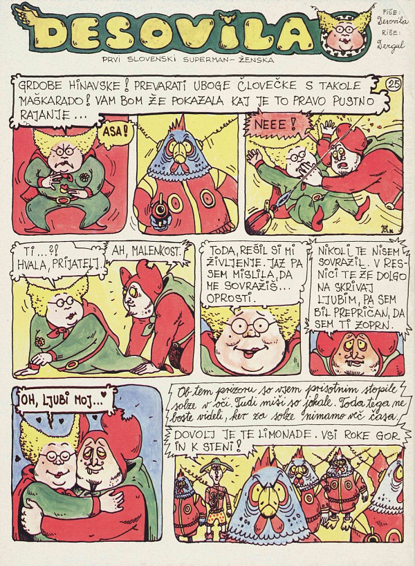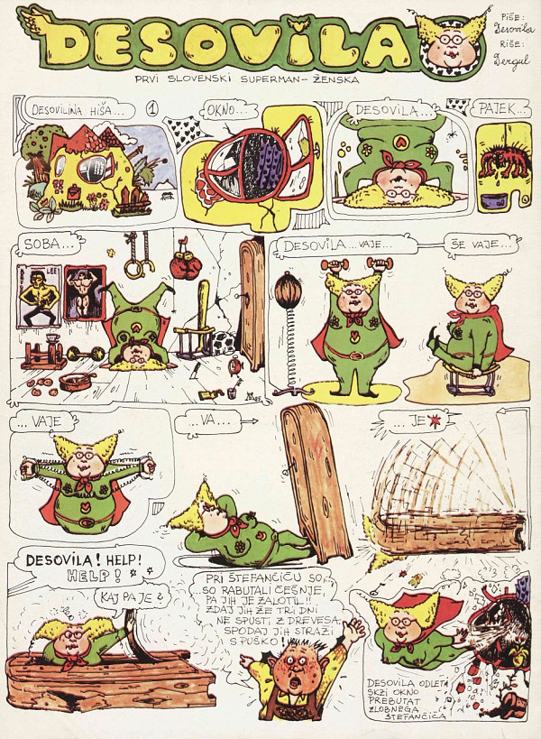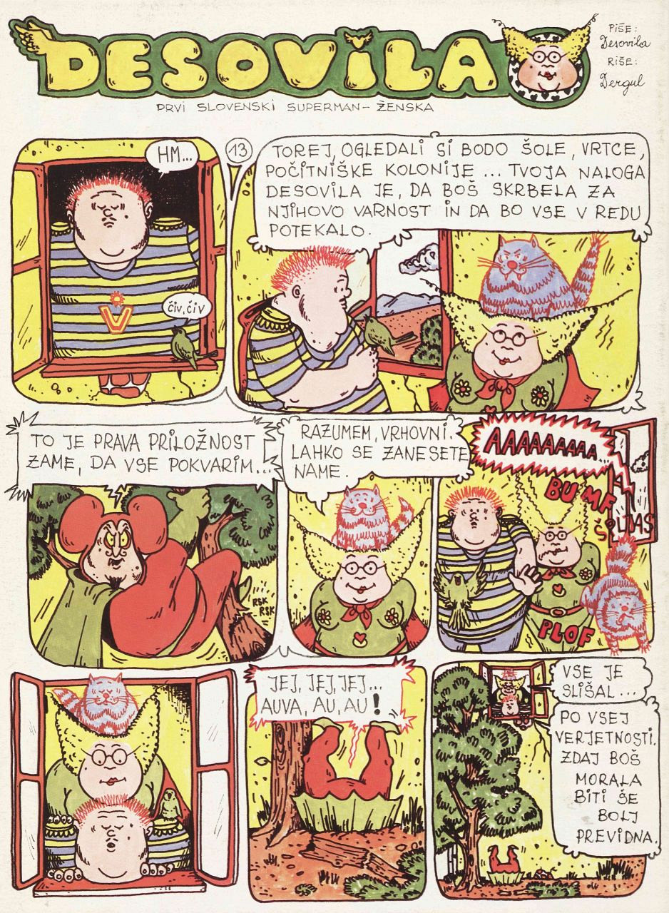 Gre za strip o hrabri a nerodni supermanki DESOVILI, ki ji na njenih reševalnih misijah ves čas nagaja poredni superman DERGUL. Desovila uspešno rešuje težave otrok in njihovih staršev.