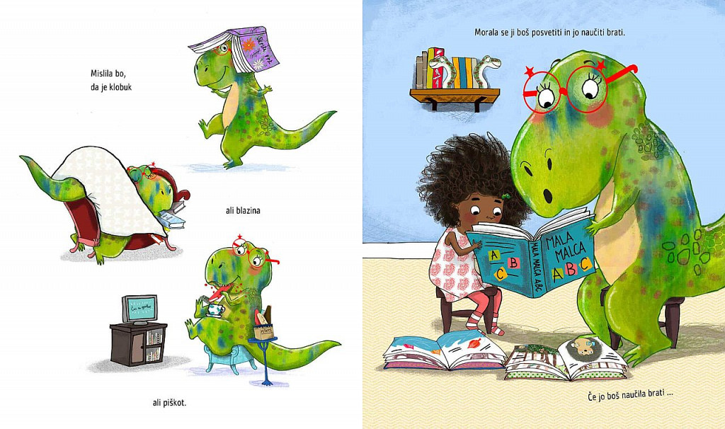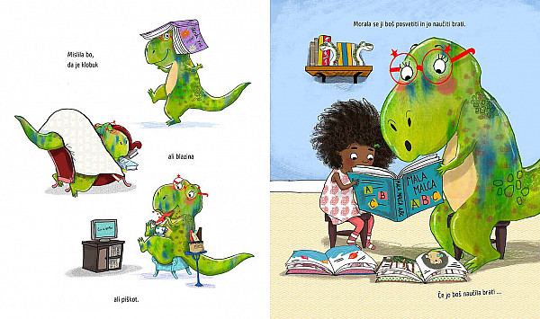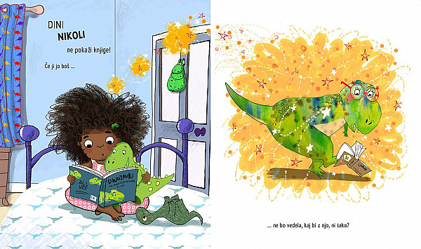 Knjige! Kartonke, slikanice, romani … nas spremljajo skozi življenje, nas tolažijo, nam kažejo pot in nas zabavajo. Si lahko zamisliš, kaj se bo zgodilo, če pokažeš Dini dinozavrinji knjigo? Najprej ne bo vedela kaj naj z njo, potem pa … se bo naučila brati in lahko bo postala, karkoli si bo želela. Preberite več