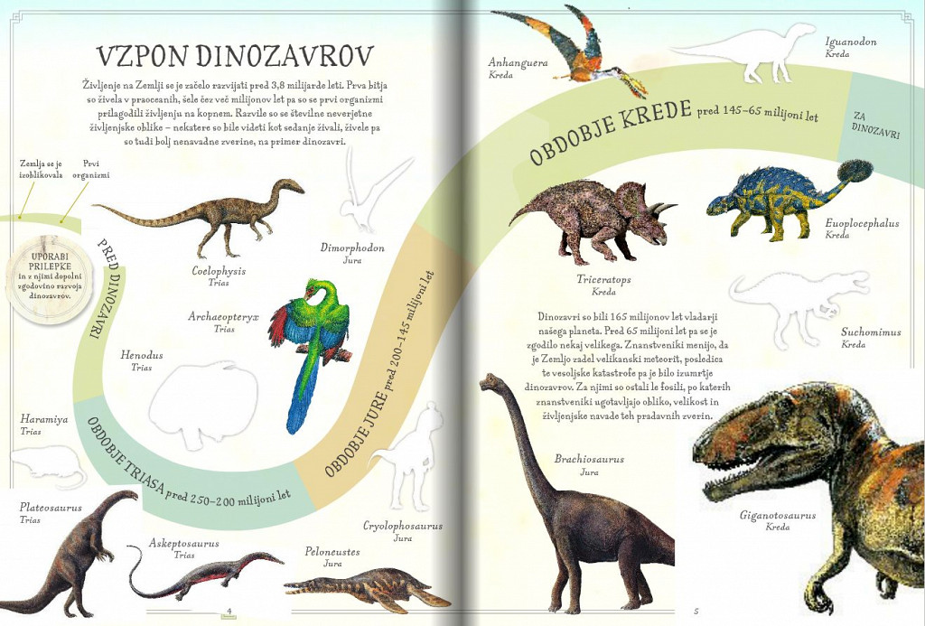 V tej bogato ilustrirani knjižici lahko spoznaš presenetljivi svet dinozavrov. Poleg slik ti bodo znanje utrdili zanimivi podatki o vsaki živali, sestavljanke iz pradavnine in sijajne prilepke ter velik, zgibljiv plakat. Začni odkrivati! Preberite več