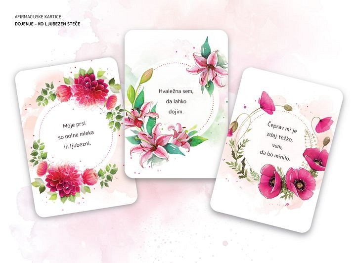 Dojenje je dar narave dojenčku in njegovi mamici. A čeprav je naravno, ni vedno enostavno. Je veščina, ki se je naučita mamica in dojenček skupaj. Da bo njuna dojilna zgodba čim lepša, ju lahko podprejo prve slovenske afirmacijske kartice o dojenju z uporabno knjižico nasvetov. Kartice so namenjene nosečnicam, ki si želite dojiti in vsem mamicam z dojenčki, ki že uspešno dojite ali pa se soočate z izzivi pri dojenju. So tudi čudovito darilo ob rojstvu otroka.