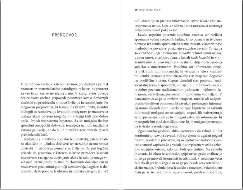 ERVIN LASZLO, vodilni teoretik sistemov, je bil dvakrat nominiran za Nobelovo nagrado za mir. Je urednik mednarodne periodične publikacije World Futures: The Journal of General Evolution in rektor novoustanovljene univerze GlobalShift. Je tudi ustanovitelj in predsednik mednarodnih možganskih trustov Club of Budapest ter General Evolution Research Group. Je avtor, soavtor ali urednik več kot sto knjig, prevedenih v štiriindvajset jezikov. Živi v Italiji.