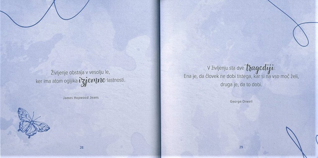 Unikatna darilna knjižica manjšega formata prinaša izbor misli in drobnih radosti različnih avtorjev o življenju.