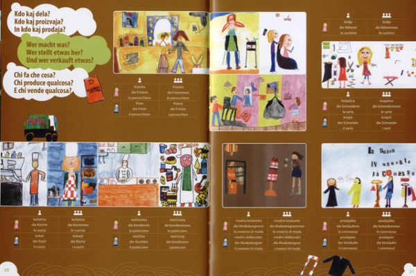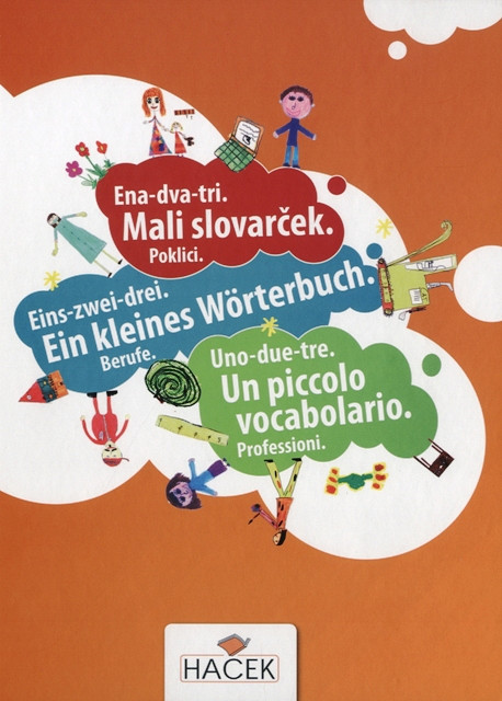 Mali slovarček je tri-jezični slovar za osnovnošolce. Nastal je po idejni zamisli vodje zamejske knjigarne Haček v Celovcu, ki združuje slovensko kulturo in jezik. Ilustracije za slovar so prispevali učenci obmejnih slovenskih šol: Železna Kapla, Brnca, Grebinj, Straja Vas, Loče, Bistrica pri Tržiču in OŠ Petra Butkoviča. Slovarček razlaga poklice v slovenskem, nemškem in italijanskem jeziku: kdo poučuje, kdo vzgaja, kdo pleše z otroki, kaj delajo športniki, umetniki, kdo pomaga, ko boli, gori in kdo skrbi za našo varnost, kdo obdeluje zemljo, kdo dela v gozdu, kdo upravlja velike stroje, kdo raziskuje , kdo dela v pisarni in drugo. Trda vezava, 21,5 x 28 cm, 32 strani.