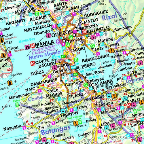 Na avtokarti Filipinov v merilu 1:900.000 je na voljo še veliko dodatnih informacij: turistične znamenitosti, nacionalni parki, kampi, razdalje v kilometrih in karte večjih mest. Priložen mestni register s poštnimi številkami omogoča hitro usmeritev. Preberite več