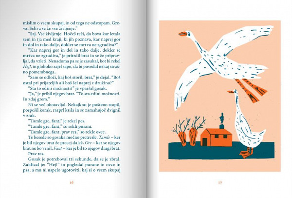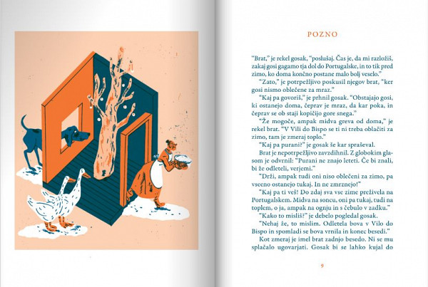 Lepo oblikovana knjiga z vrhunskimi modro-oranžnimi ilustracijami Gerde Dendooven.