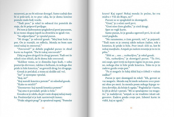 Gosak in njegov brat se imata na kmetiji lepo. S purani, ovcami, psom in kmetico se dobro razumejo. Le občasno njuno brezskrbno življenje skalijo vprašanja, ki ju zbegajo. Zakaj se svet nenehno spreminja? Kdaj natančno se začne noč? Ali sreča lahko traja? Njuna razmišljanja se bralcu razkrivajo v neposrednih in iskrenih dialogih, ki jih odlikujeta minimalističen slog in prefinjen humor.