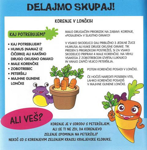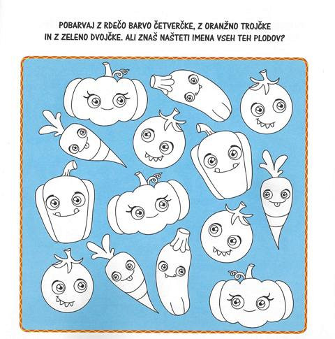 Ta izobraževalna zbirka ponuja vašemu otroku niz privlačnih nalog s sadjem in zelenjavo. Vsebuje tudi recepte za razne slastne jedi, tako da jih bo lahko skupaj z otrokom pripravljala vsa družina.Poleg tega bo vaš otrok v tej imenitni zbirki na zanimiv in zabaven način zvedel veliko novega o sadju in zelenjavi ter spoznal, zakaj sta tako pomembna za vaše zdravje.Zbirka, polna vitaminov za telo in možgane!Mehka vezava, 21 x 21 cm, 40 strani.