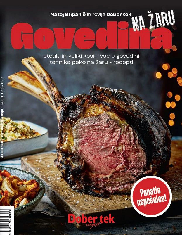 Za vse ljubitelje ognja in dobrega mesa je v izšla ponatisnjena posebna tematska izdaja revije Dober tek s katero razkrivamo skrivnosti dobre govedine na žaru: o govedini, pasmah in vzreji, poimenovanja in opisi kosov mesa, zorenje govedine, kako izbrati dober steak. Preberite več