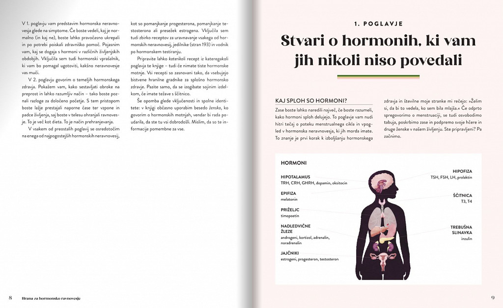 Knjiga temelji na najnovejših odkritjih na področju prehrane za hormone in vsebuje: