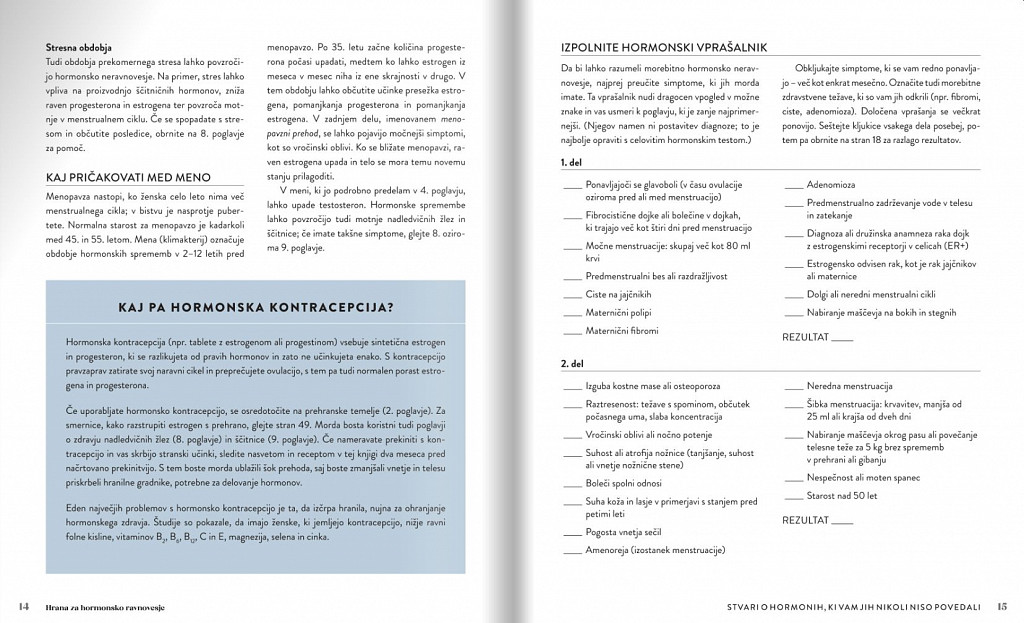 - vprašalnike in ocene, s katerimi boste opredelili svoje hormonsko neravnovesje in ga nato popravili s prehrano