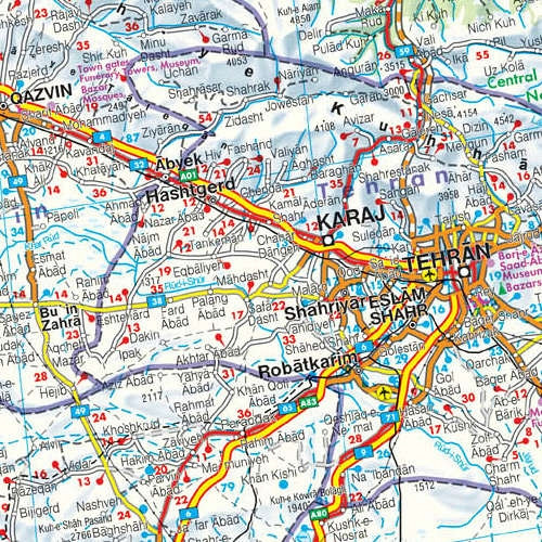 Na avtokarti Irana v merilu 1:500.000 je na voljo še veliko dodatnih informacij: turistične znamenitosti, nacionalni parki, kampi, razdalje v kilometrih in karte večjih mest. Priložen mestni register s poštnimi številkami omogoča hitro usmeritev. Preberite več