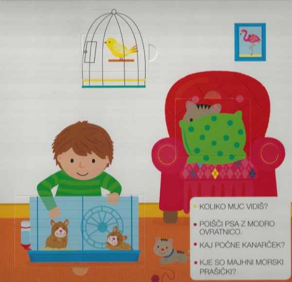 Na vsaki dvojni strani bodo našli različne naloge, zabaven tekst, ki ga bosta lahko na glas prebrala mama in očka, in nekaj vprašanj, na katera bodo z veseljem odgovorajali. Odgovori se skrivajo pod okenci.