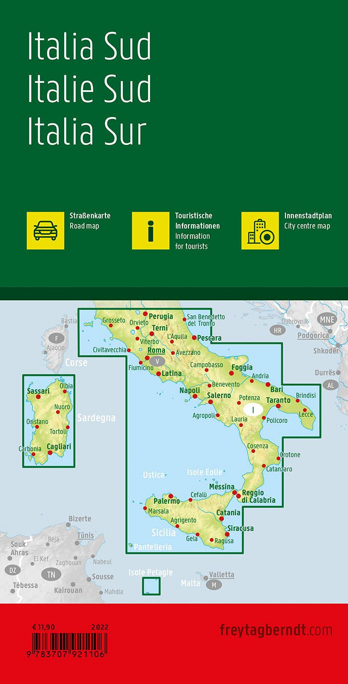 Na avtokarti J Italije v merilu 1:500.000 je na voljo še veliko dodatnih informacij: turistične znamenitosti, nacionalni parki, kampi in načrti ključnih mestnih središč. Mestni register s poštnimi številkami pa omogoča hitro usmeritev. Preberite več