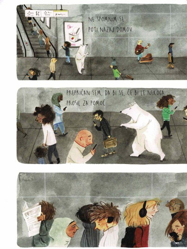 Severni medved se znajde daleč od doma, sredi tujega sveta. Tu so vsi čisto preveč zaposleni, da bi mu utegnili pomagati. Potem pa mu mala deklica pokaže, da je tudi v velikem mrzlem mestu mogoče najti ljubezen, prijateljstvo in pomoč. Preberite več