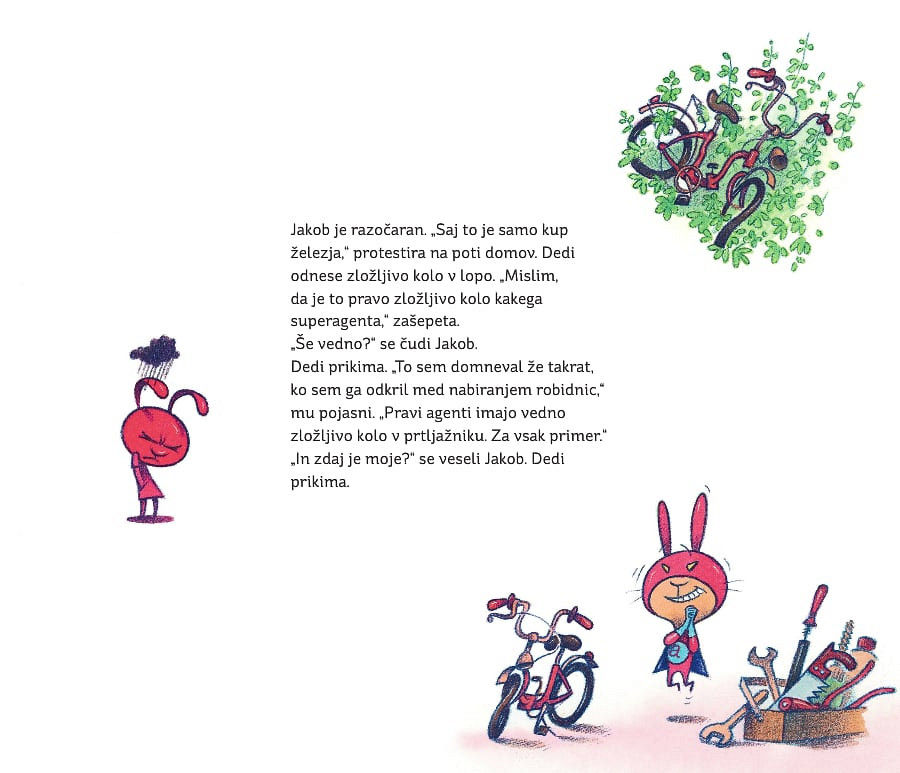Jakob preživlja počitnice pri dedku na deželi. Dedek je super – a tam ni interneta in ne kina, dedek nima niti svojega avtomobila. Potem pa nekega dne v jarku ob cesti odkrijeta rdeče zložljivo kolo. Preberite več