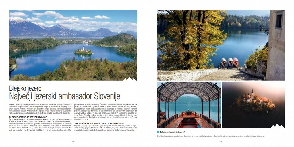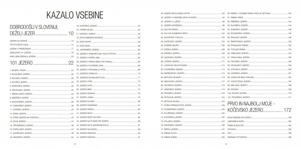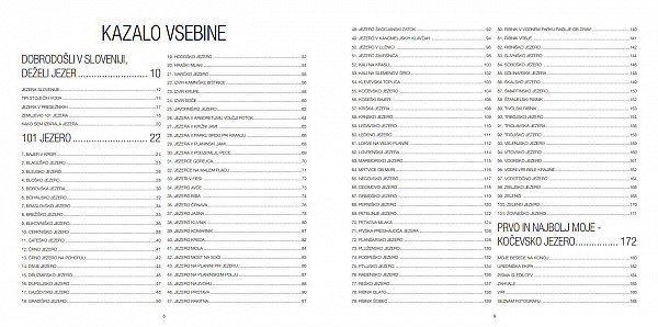 Knjiga Jezera Slovenije je najlepši in najizvirnejši vodnik po najboljših slovenskih jezerih in najlepša oda jezerom Slovenije. V knjigi najdete izbrana slovenska jezera v vseh oblikah, ki bi jih moral obiskati vsak Slovenec. Vsako jezero je opremljeno s fotografijami in vsemi informacijami, ki jih potrebujete za naslednje čudovito jezersko potovanje. Napisana je v slovenskem jeziku.