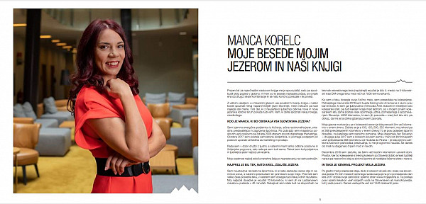 Manca Korelc je zjemno energična podjetnica iz Kočevja, srčna raziskovalka jezer, strastna predavateljica in zagrizena športnica. Po izobrazbi je magistrica poslovnih ved, poslovno pa od leta 2008 stopa po poti digitalnega marketinga. Oktobra 2017 je postala samostojna podjetnica, ki pomaga podjetjem pri poslovni uporabi LinkedIna za marketing in prodajo. Od spomladi 2017, odkar je vzniknil projekt Moja jezera, se njen svet vrti okoli jezer. Kolesarjenje in odkrivanje stoječih voda je postalo njen življenjski stil. Jezera resnično ljubi, zato jim je posvetila svoje življenje.