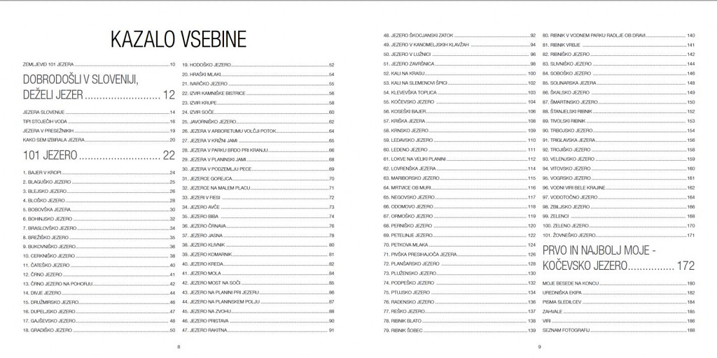 Knjiga je nastala izpod peresa slovenskega dekleta, ki se je odločilo obiskati vsa slovenska jezera s kolesom. Navdihnjena z več stotimi jezeri po vsej državi, je skrbno izbrala 101 jezero, ki bi jih moral obiskati vsak Slovenec. Do časa pisanja knjige je Manca obiskala že več kot 1400 jezer. Ko boste prišli do konca knjige, boste vedeli vse o slovenskih jezerih (in Manci) in dobili motivacijo, da jih raziščete. Vabljeni v izjemen svet očarljivih slovenskih jezer.