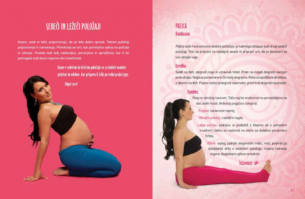 'Joga za nosečnice' je prvovrstni priročnik, ki poleg vaj vsebuje tudi dihalne tehnike, tehnike sproščanja, informacije o meditaciji med nosečnostjo in še mnogo več. Prikaz vaj je popestren z več kot 100 profesionalnimi in barvnimi fotografijami, ki zagotavljajo varno in natančno izvedbo. Pripis navodil, opomb in pozitivnih učinkov. Preko jogijske filozofije in mojih osebnih izkušenj- kot mamica in jogistka, želim s knjigo pomagati čim več bodočim mamicam, da bodo svojo nosečnost preživele čim lepše in aktivno.