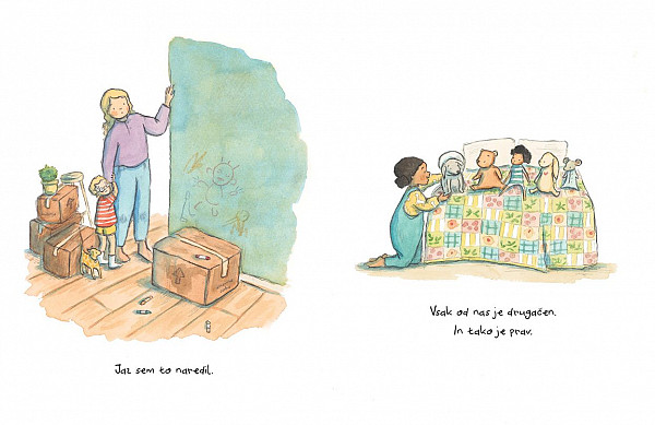 Topla in nagajiva vsebina te slikanice nas z empatijo, prijaznostjo in besedami, ki prihajajo iz srca, popelje do številnih drobnih trenutkov v naših življenjih in pomembnih čustvih, ki jih spremljajo.