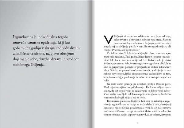 »Izgorelost že dolgo ni več tegoba preobremenjenih posameznikov, ampak sistemska epidemija, ki ji, kot piše Bagola, “kot gobam dež godijo v skrajni individualizem zakoličene vrednote, na glavo obrnjeno dojemanje sebe, družbe, države in vrednot sodobnega življenja”.« - Zvezdana Bercko, Večer