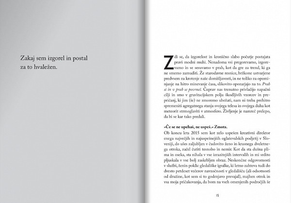 »Spregovoriti o izgorelosti tako odkrito je težko, še zlasti za človeka, ki ga imajo ljudje za vsestransko uspešnega in celo malo samovšečnega.« - Meta Černoga, Nedeljski dnevnik
