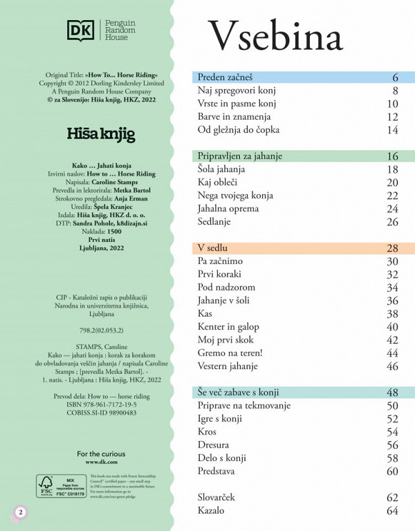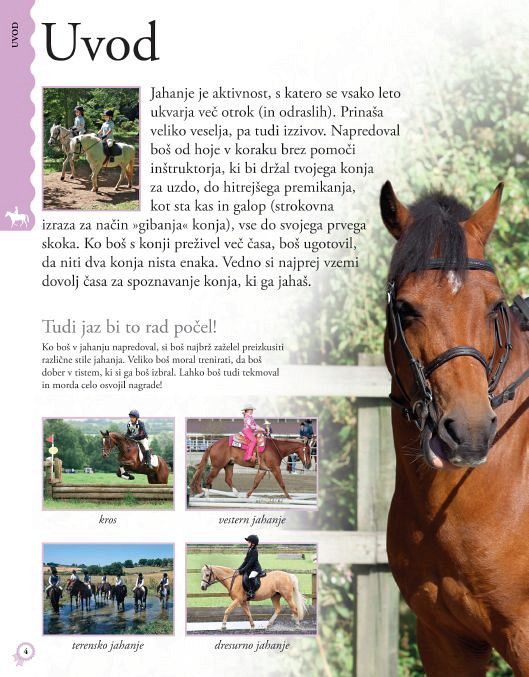 Poln je praktičnih navodil in fotografij, ki korak za korakom prikazujejo vse, kar moraš vedeti o jahanju: od tega, kako zajahati in razjahati konja, do informacij o krosu in dresurnem jahanju. V njem najdeš nasvete glede nege konja in opreme, pa tudi čudovite namige za odlične predstave in zmage na tekmovanjih.