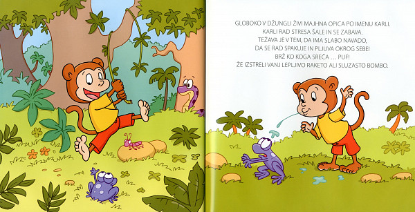 Globoko v džungli živi majhna opica po imenu Karli. Karli rad stresa šale in zabava. Težava je v tem, da ima slabo navado, da se rad spakuje in pljuva okrog sebe! Preberite več