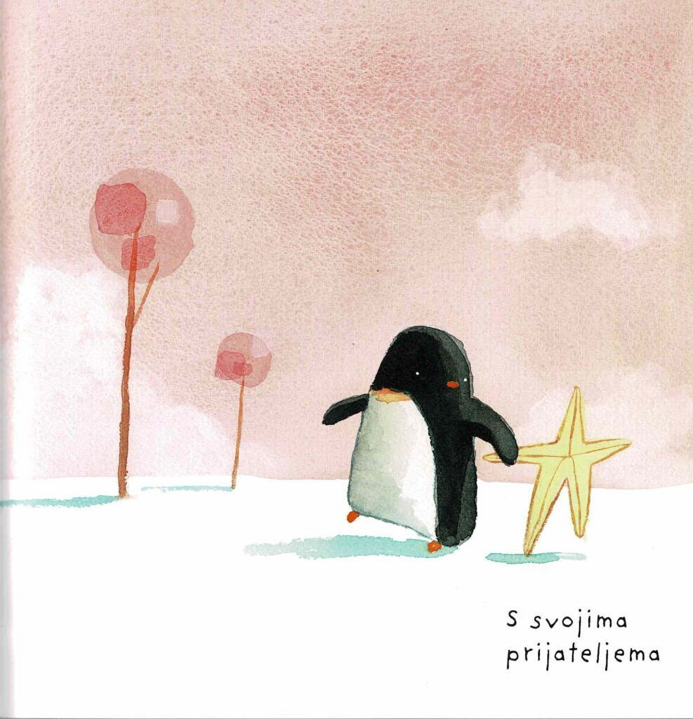 Deček, njegov prijatelj pingvin in igriva zvezda se vsak dan igrajo skrivalnice. Toda nekega dne zvezda izgine, deček pa se z vso resnostjo odpravi na iskanje. Na pomoč mu priskoči marsovec, ki ga s svojo vesoljsko ladjo popelje v iskanje skozi vesolje in proti severnemu tečaju. A medtem zvezdo najde deklica, ki si je vedno želela prav take prijateljice. Ko se njuni poti srečata, se pred otrokoma odpre nežna dilema – komu pripada zvezda?