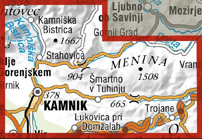 Planinski zemljevid Kamnik in okolica - 1 : 25.000 je najboljši za raziskovanje vrhov in poti nad Kamniško Bistrico in Tuhinjsko dolino ter še vedno živih in očarljivih planin Velike planine, Menine planine in južnega dela Dleskovške planote. Nad njimi boste našli priljubljene izletniške in planinske točke s številnimi kamniškimi hišnimi vrhovi in znamenitostmi. Preberite več