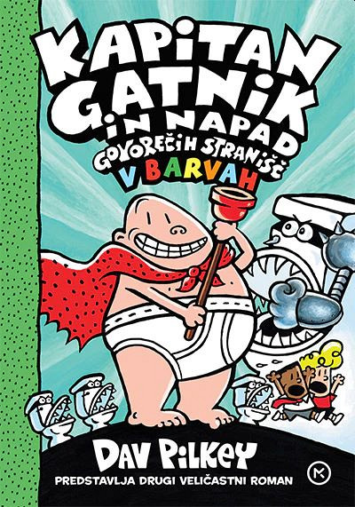 Drugi veličastni roman o kapitanu Gatniku – v barvah! Grega in Klemen sta ponavadi zelo odgovorna. Kadarkoli kdo kaj ušpiči, sta ponavadi odgovorna onadva! Njuna najnovejša potegavščina jima ne uspe po pričakovanjih in po nesreči izumita vojsko zlobnih govorečih stranišč. Na srečo poznata superjunaka, ki premore dovolj elastičnosti v pasu gat, da mu bo uspelo rešiti svet. Pomaga lahko samo Kapitan Gatnik! Knjiga, ki trga gate!