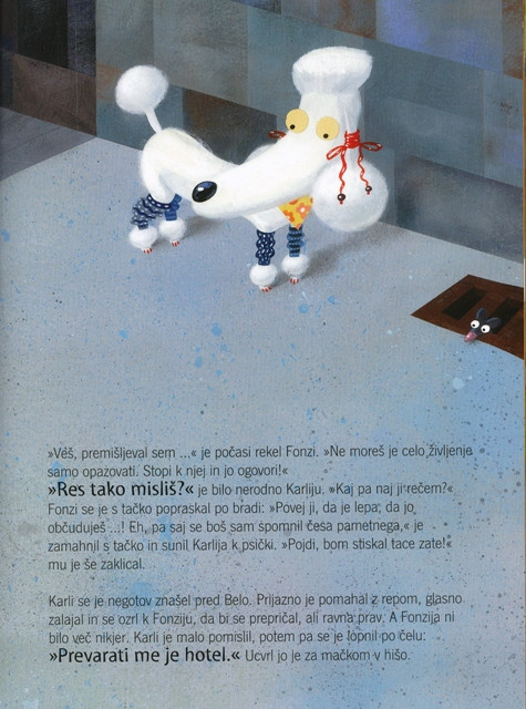 Zgodba se zapleta. Tako pes kot maček se na vse načine trudita prelisičiti drug drugega. Vsak si želi zlato ribico zase. Pa se v nekem trenutku oba znajdeta pri bučki, v kateri plava zlata ribica. Skočita k njej, bučka se prevrne in zlata ribica pade na tla. Pes in mačka presenečena ugotovita, da zlata ribica ni ne zlata, pa še majhna je. Suneta se v ramo in si obljubita, da ne bosta več dovolila, da bi kaj ogrozilo njuno prijateljstvo - pa če teta Mari prinese zlato kokoš.