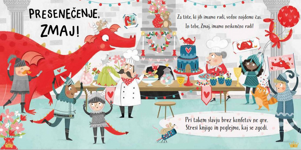 Rdeči zmaj je razočaran in žalosten. Še dobro, da mu mali bralec nameni nekaj prijaznih in spodbudnih besed, ki bodo zmaju slab dan prečarale v lepšega. Ampak kako naj razveseli žalostnega zmaja? Kaj naj stori, kaj naj mu pove? Slikanica Biance Schulze z zelo prikupnimi ilustracijami Samare Hardy otroke uči empatije ter izražanja in izkazovanja prijateljstva. Nazorno pove, katere besede bodo zmaja potolažile, da ga je treba pobožati in spraviti v smeh, z njim zapeti in zaplesati; lahko pa tudi zatopotati z nogami po tleh. Za otroka je koristno, da se nauči formule za boljše počutje, da bo znal pomagati sebi, pa tudi drugim do boljšega počutja. Toplo priporočam celotno zbirko o prikupnem rdečem zmaju! (Maja Črepinšek)