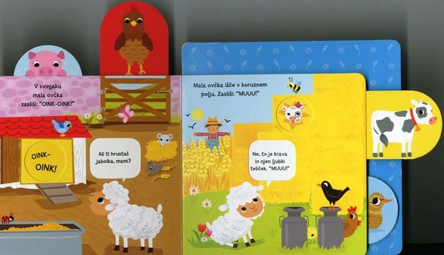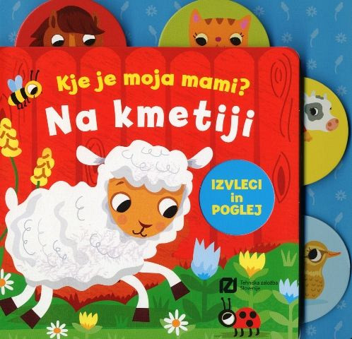 Kje je moja mami? Na kmetiji. Pomagaj mali ovčki poiskati njeno mami. Med iskanjem lahko spoznaš veliko zabavnih prijateljev.Kartonka, 19 x 19 cm, 10 strani.